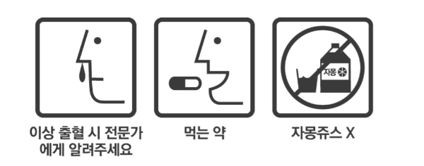 - 코피, 멍, 생리과다 등 출혈이 지속되는 경우 의사에게 알립니다.
