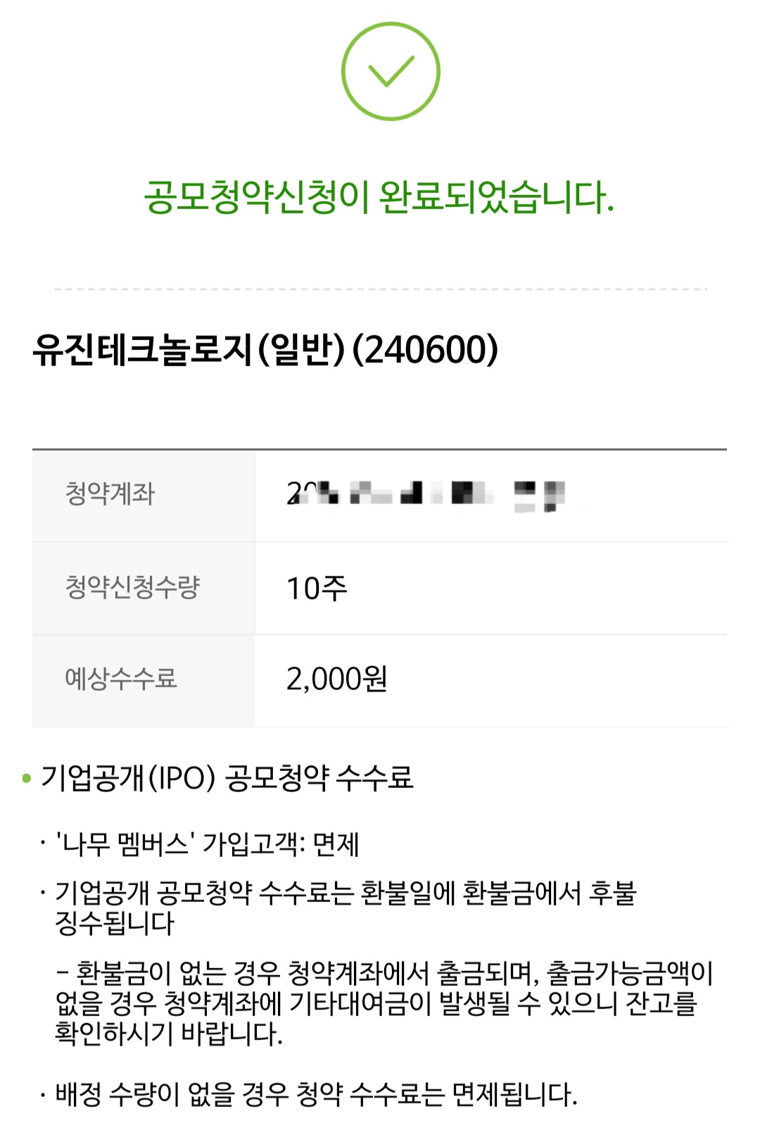 네이버 증권에서 IPO 일정과 주관하는 증권사를 확인한 뒤 유진테크놀로지에만 청약을 하기로 결정하였습니다.